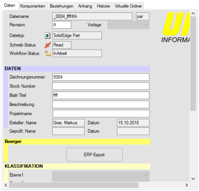 Im Datenblatt werden alle Metadaten als Felder übersichtlich angezeigt
